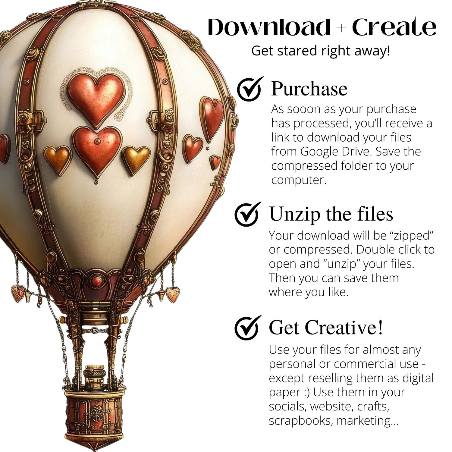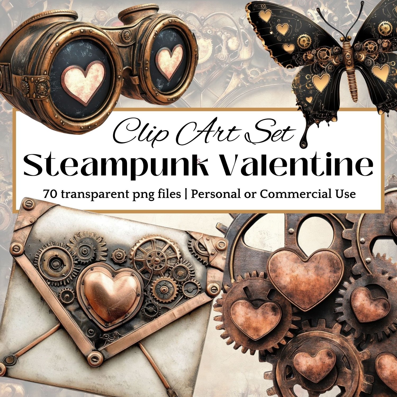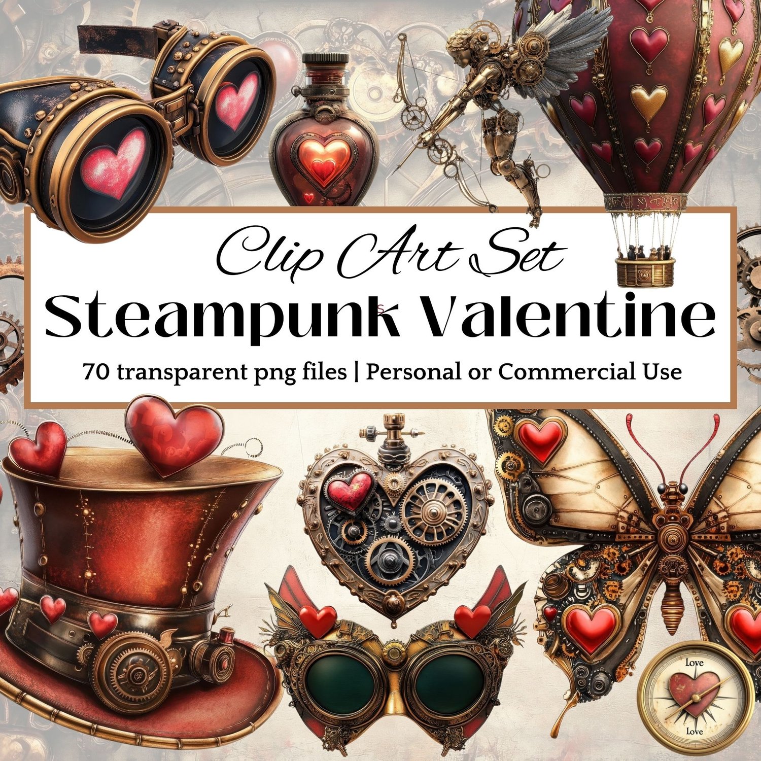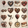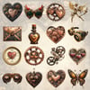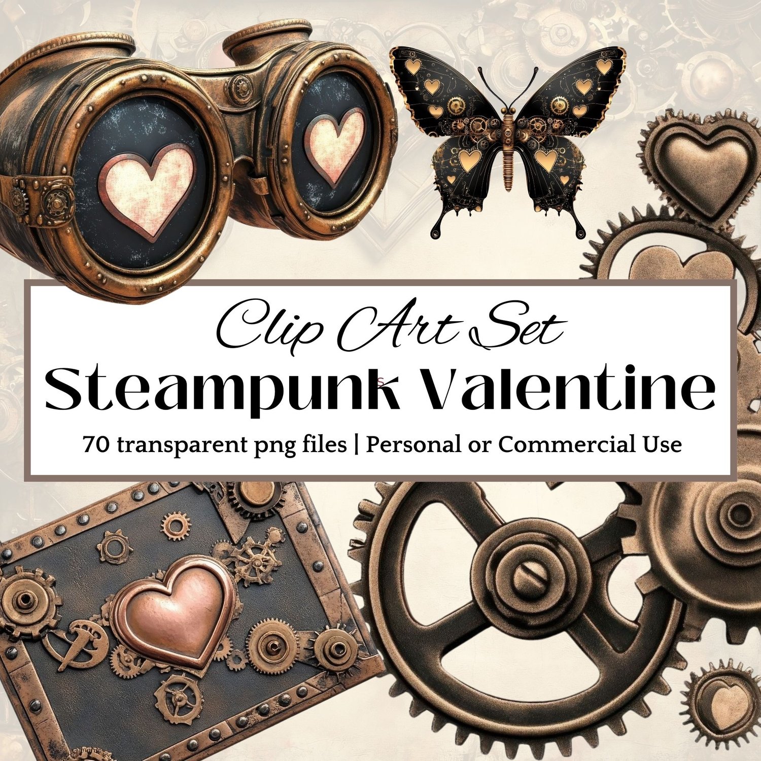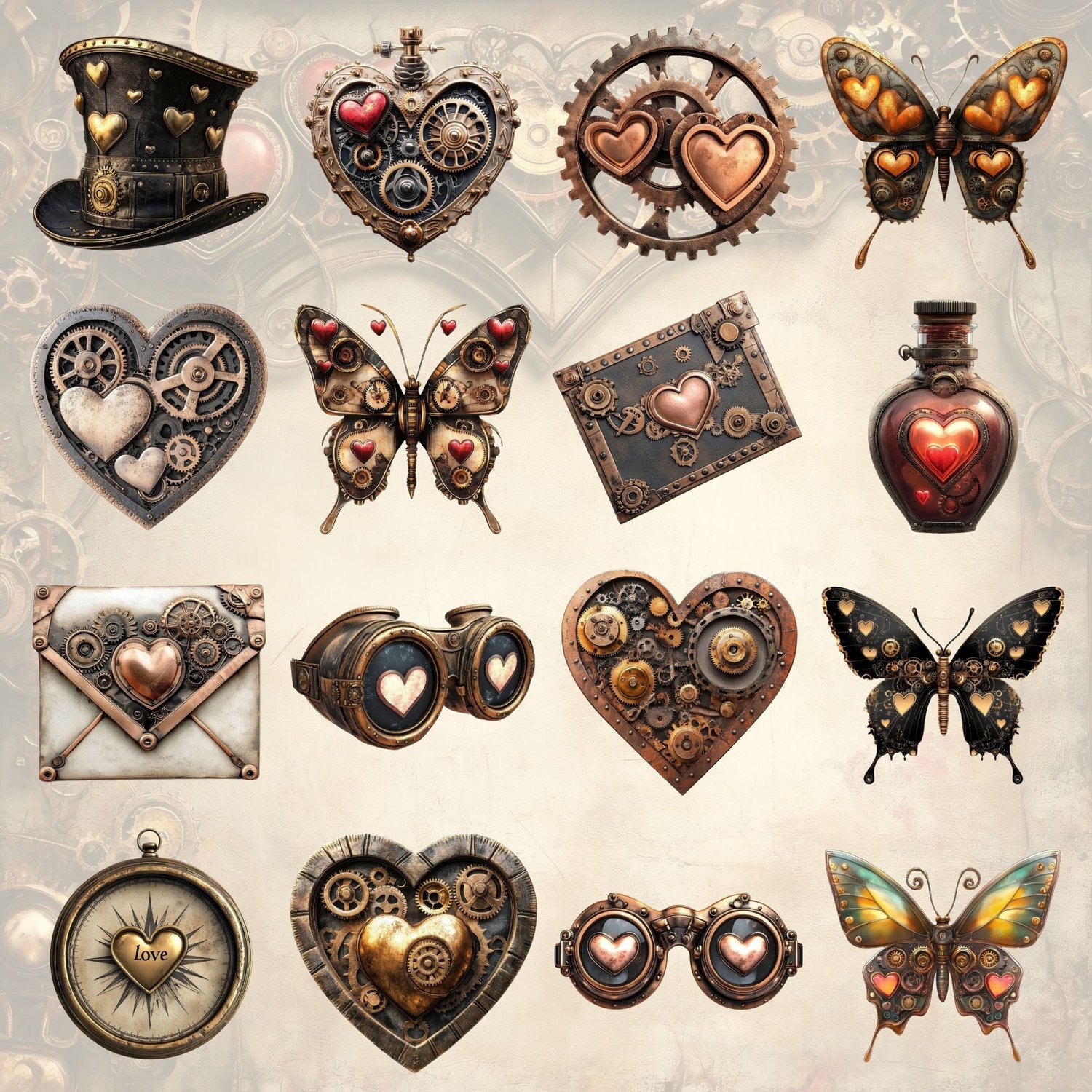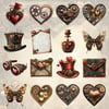 Design steampunk-inspired Valentine’s Day projects with this high-quality clipart set, featuring mechanical hearts, gears, and Victorian ephemera.