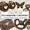 These steampunk PNG files are perfect for junk journaling, digital scrapbooking, printable Valentine’s Day cards, and mixed media designs. Instantly download and create vintage-meets-industrial aesthetics with intricate Victorian mechanical elements.
