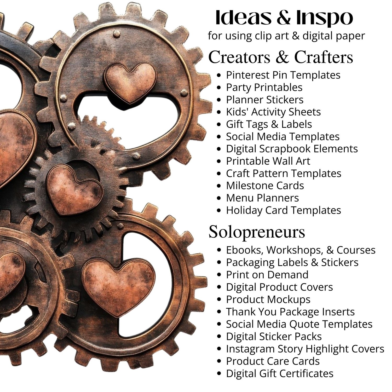 ✔ Mechanical heart Valentine designs – Vintage gears, cogs, and clockwork elements