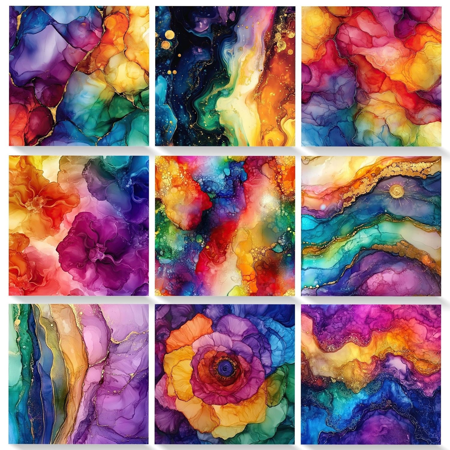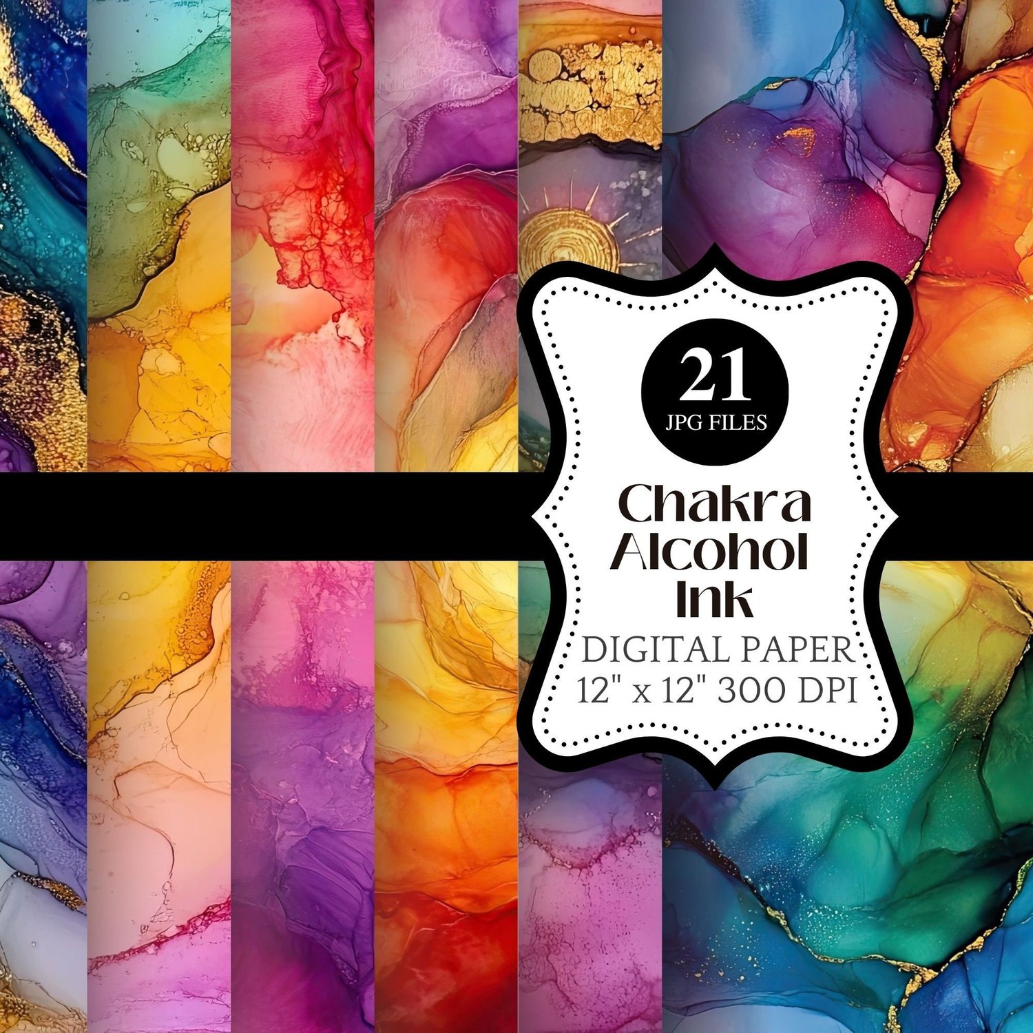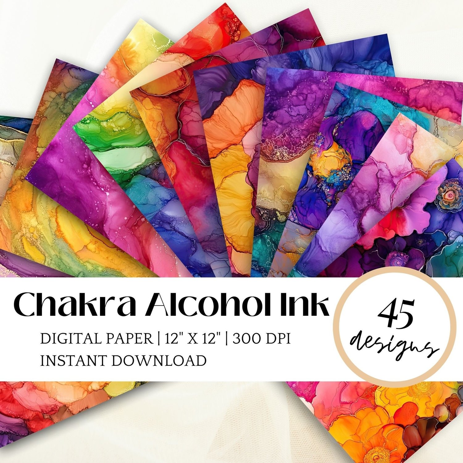 Chakra Alcohol Ink Digital Paper – 45 Printable Designs for Energy Healers, Reiki Practitioners, and Spiritual Branding