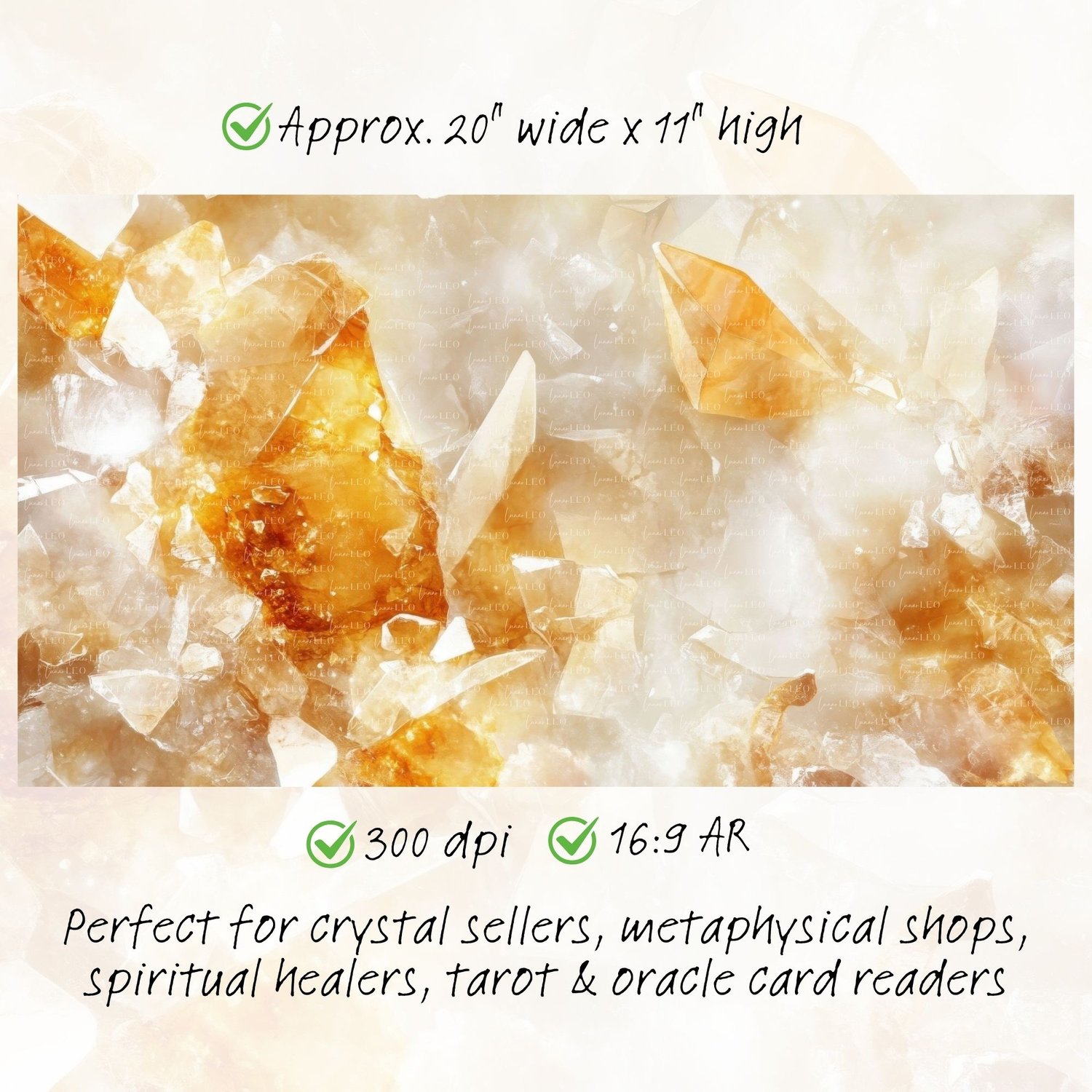• Citrine crystal-inspired backgrounds in golden, radiant hues